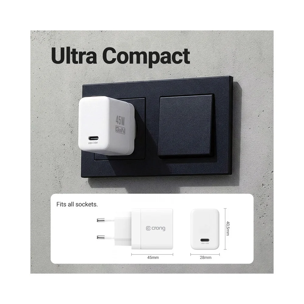 | Crong Ultra Compact 45 W | 45 W | 1× USB-C | ✅ | ✅ | 89,00 zł |