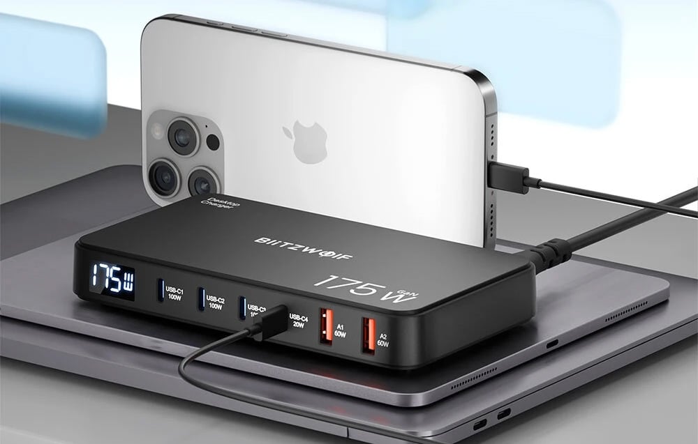 Blitzwolf BW-S30 175W 6 w 1 (4×USB-C + 2×USB-A) | 175 W · 4×USB-C + 2×USB-A | Stacja ładująca 6 w 1 – jedno urządzenie do laptopa, telefonu i tabletu. | 159 zł |