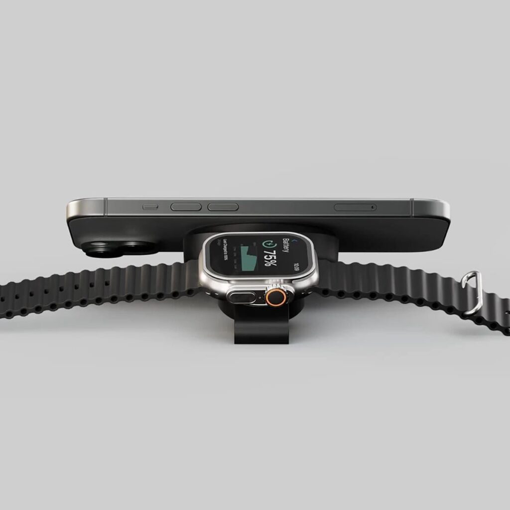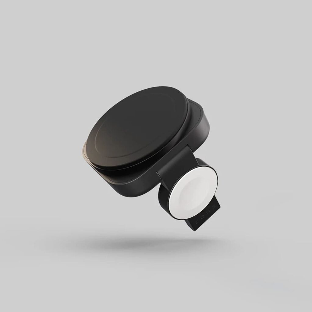 Jeśli zależy Ci na bardziej kompaktowym rozwiązaniu niż duża stacja 3-w-1, dobrą opcją może być składana ładowarka magnetyczna. Tego typu modele zajmują mniej miejsca na biurku i świetnie sprawdzają się również w podróży.