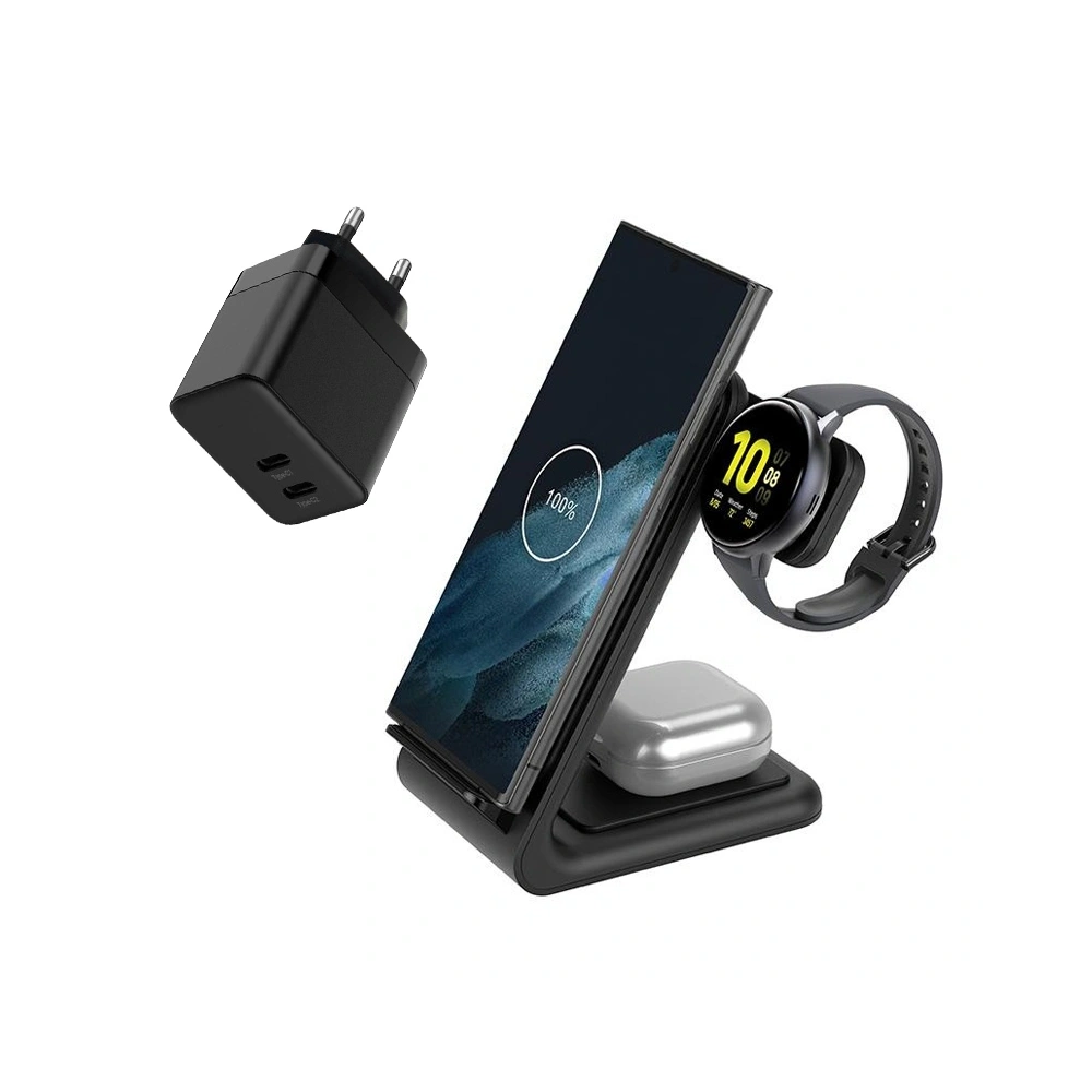 Ładowarki 3-w-1 są bardzo wygodnym rozwiązaniem, szczególnie jeśli korzystasz także z Galaxy Watch oraz słuchawek bezprzewodowych. Dzięki jednej stacji możesz ładować wszystkie urządzenia jednocześnie i uniknąć plątaniny kabli.